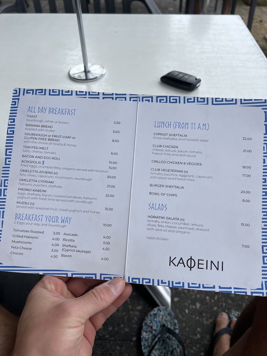The menu showcases a mouthwatering range of options, perfect for any time of day. Start your day with their All Day Breakfast, which includes enticing choices like the Omeletta Athens and homemade Banana Bread. For lunch, try their savory Cypriot Sheftalia or the refreshing Horiatiki Salata, celebrated for its authentic Greek flavors.
